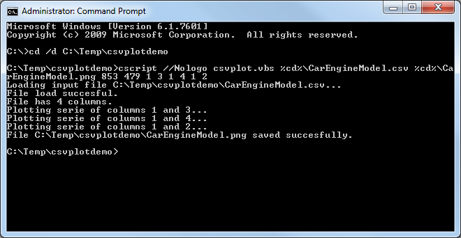 C:\Temp\csvplotdemo>cscript //Nologo csvplot.vbs %cd%\CarEngineModel.csv %cd%\CarEngineModel.png 853 479 1 3 1 4 1 2 Loading input file C:\Temp\csvplotdemo\CarEngineModel.csv...