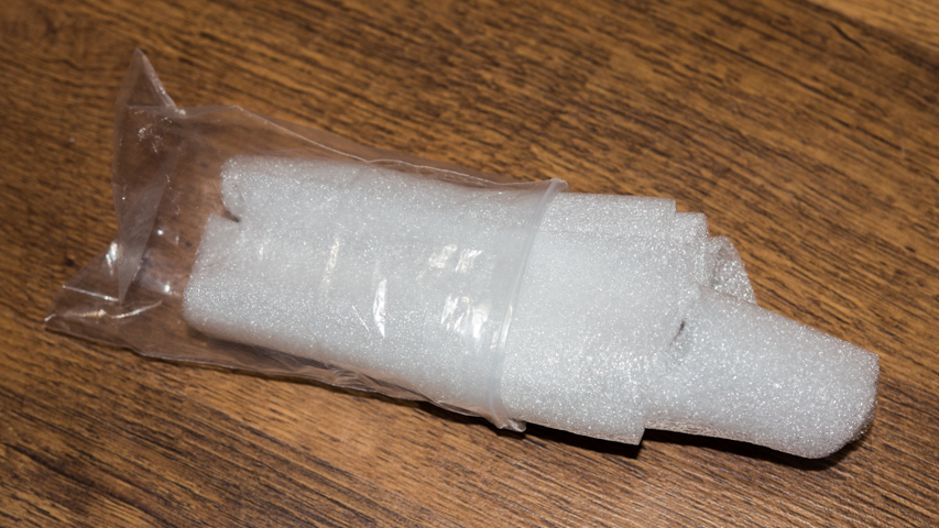 Since I was planning on removing the device for maintenance, I didn’t used glue (or anything permanent) for securing the package to the frame. Instead I used zip ties which are used for both wrapping the foam around the stripboard and attaching to the frame’s front grooves.