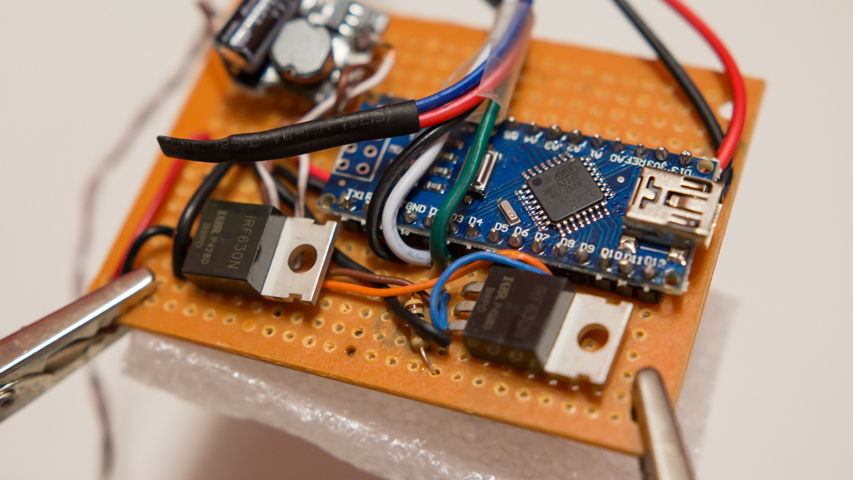 Getting rid of the stripboard would also be in my plans. Now that I know the whole circuit does not required too much connections, I am now thinking of completely removing the stripboard. This would require to hot glue both the mosfets and the current limiting circuit directly to the arduino. If done properly, the amount of hot glue required should be lighter than the stripboard.